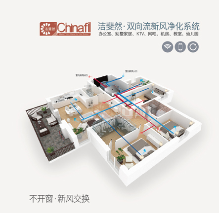 潔斐然新一代X6-AIR雙向流新風(fēng)系統(tǒng)主機(jī),適用于通風(fēng)欠佳的樓宇辦公室、KTV、網(wǎng)吧及對空氣品質(zhì)有更高要求的別墅家居、幼兒園等場所。尤其是安裝有地暖的屋宇,通過新風(fēng)主機(jī)動力將室外新鮮空氣引入室內(nèi),同時將室內(nèi)的污濁空氣排出室外。在系統(tǒng)運(yùn)作時,新風(fēng)與排風(fēng)在熱能回收中心進(jìn)行熱能交換,大幅度降低了室內(nèi)新風(fēng)溫度處理的能耗。系統(tǒng)還配備先進(jìn)的WiFi遠(yuǎn)程物聯(lián)控制器,可實現(xiàn)遠(yuǎn)程監(jiān)控管理。